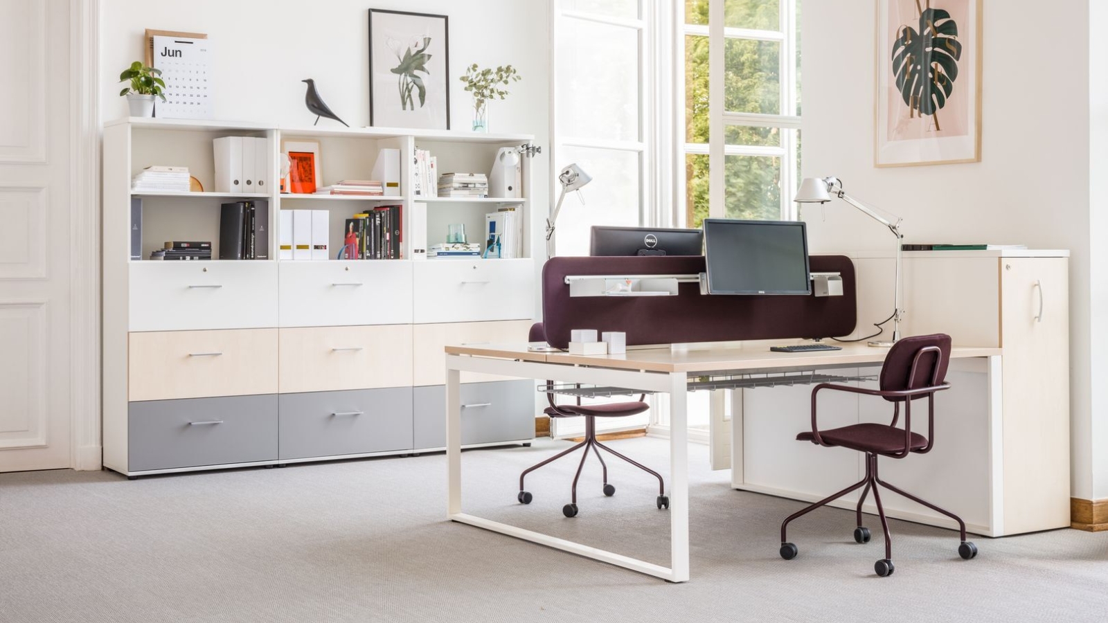 Note: Optional desk screens, cable trays, extension tops, modesty panels, and other accessories are available to support collaborative and individual work.
